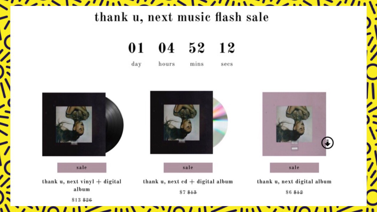I contacted the ari store and they sent me a. Sweetener double lp music double vinyl lp 2200 in stock thank u next lp. Disc 1 side a imagine needy nasa side b bloodline fake smile bad idea disc 2 side a make up ghostin in my head side b 7 rings thank u next break up with your girlfriend im bored please note if you purchase multiple items in the same cart and do not select split shipping at checkout your entire order will ship when the final items arrives.
