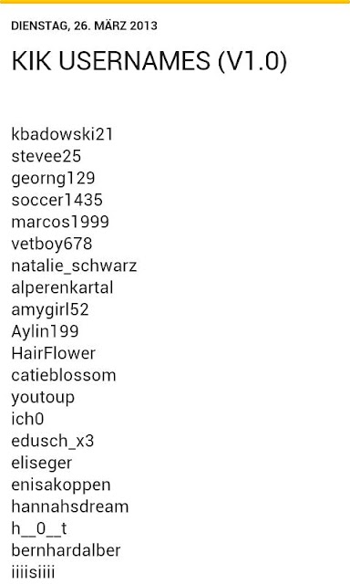 A lot of people here are willing to share their photos and their passions as well as interests. Find kik usernames of girls and guys who share your interests. Kik usernames finder.