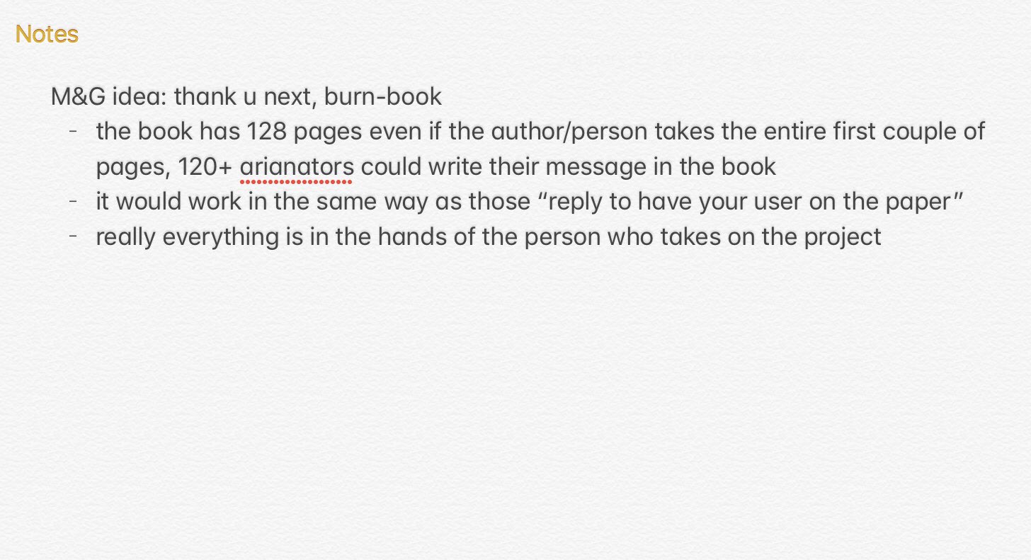 Thank u next burn book. Its no coincidence that the thank u next artwork has a very familiar looking font its the same that can be found on the front of the mean girls burn book. This cannot be changed after youve made your order.
